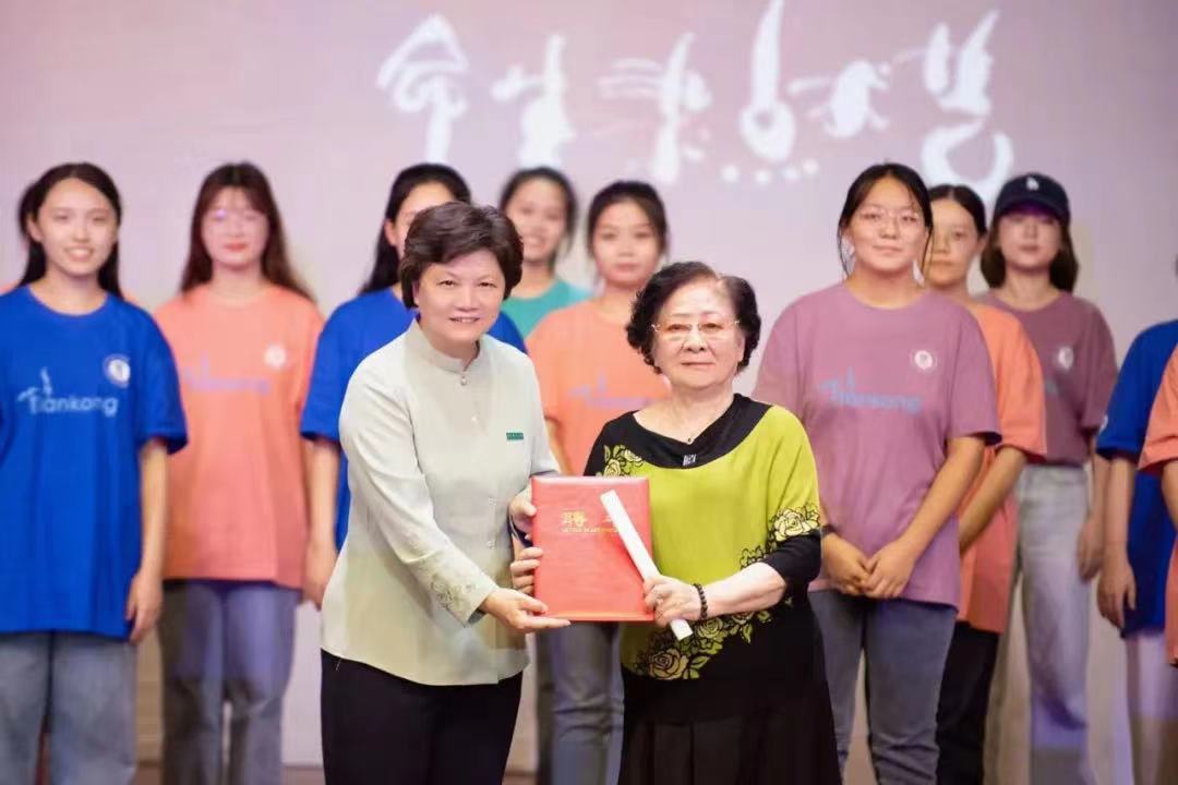 “桃花来你就红来杏花来你就白,爬山越岭我寻你来呀,啊格呀呀呔……”讲坛接近尾声,Tiankong合唱团在张红丽的教学下唱响《桃花红杏花白》,和台下师生一起与在场的艺术家们联动,共同展现了一堂短暂但别开生面的音乐课。