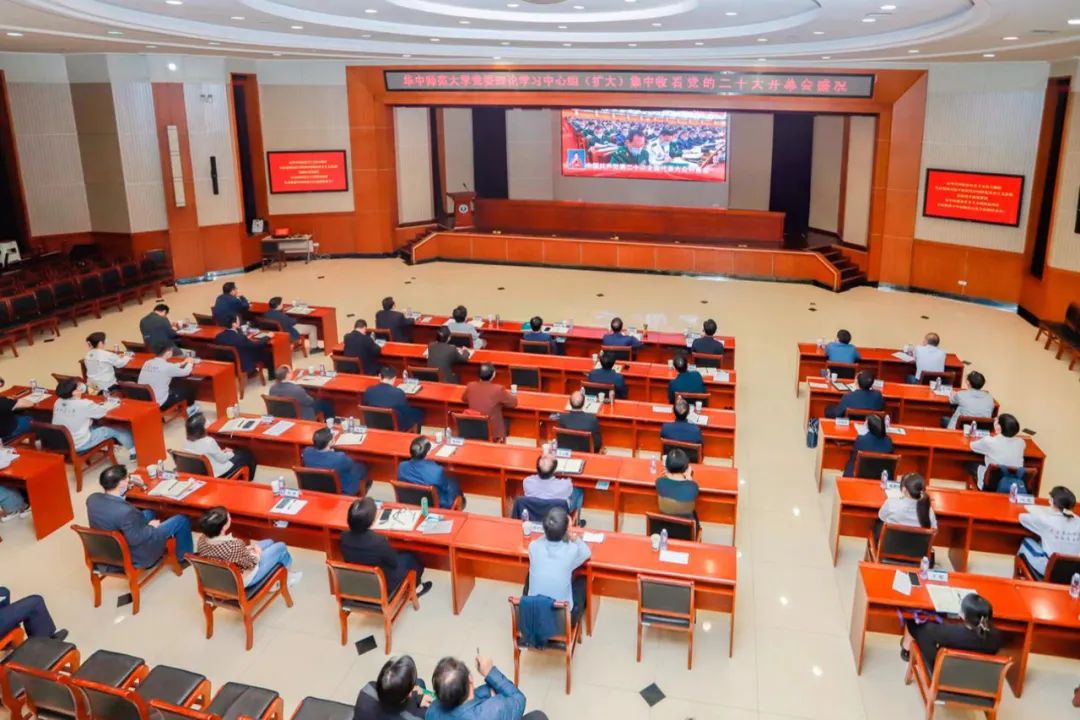 在学校党委统一安排部署下,开云足球体育广大党员干部师生以多种形式收听收看了开幕会。上午十时,在科学会堂一楼报告厅主会场,校领导,校党委理论学习中心组(扩大)成员,学校入选湖北省委讲师团、武汉市委讲师团的专家代表,以及来自校学生会、研究生会、社团中心等学生组织的代表集中观看了开幕会,认真聆听了习近平总书记的报告。各单位也设立分会场,组织师生收听收看开幕会盛况。