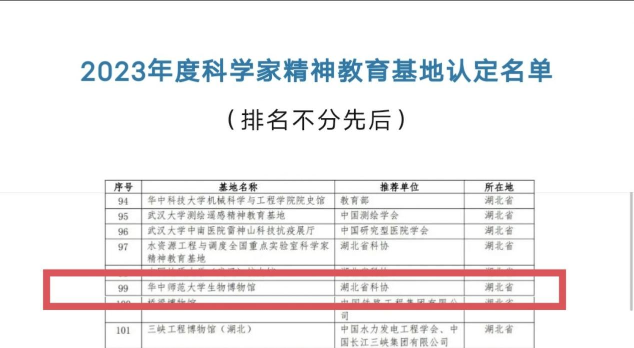 华大在线讯(通讯员 邓淑文 黄悦)5月30日,中国科协、教育部、科技部、国务院国资委、中国科学院、中国工程院、国防科工局联合发布2023年度科学家精神教育基地认定名单。经过初评、终评和公示等程序,开云足球体育生物博物馆成功入选2023年度科学家精神教育基地。