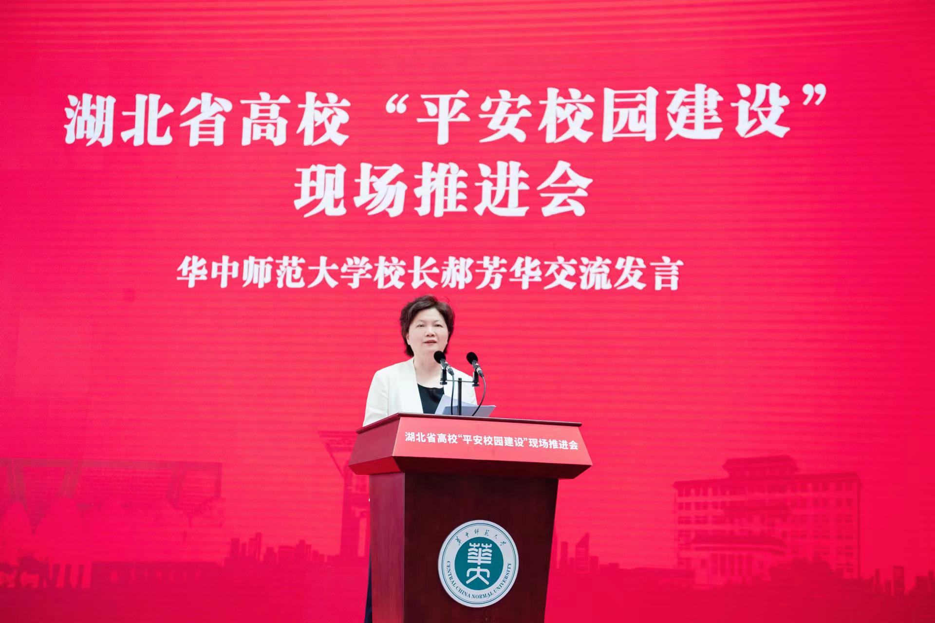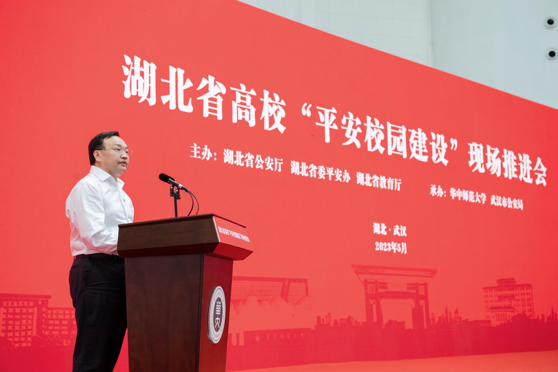 华大在线讯(记者 华轩)近日,全省高校“平安校园建设”现场推进会在开云足球体育佑铭体育馆举行。湖北省副省长、公安厅厅长徐文海,省委政法委副书记肖红梅,省教育厅党组书记、厅长周静,省公安厅党委副书记、副厅长吴德清,武汉市副市长、公安局局长杨彪出席。省直单位、全省高等学校以及市、州、直管市公安局相关负责人参加。校党委书记夏立新作致辞发言,校长郝芳华作经验交流。