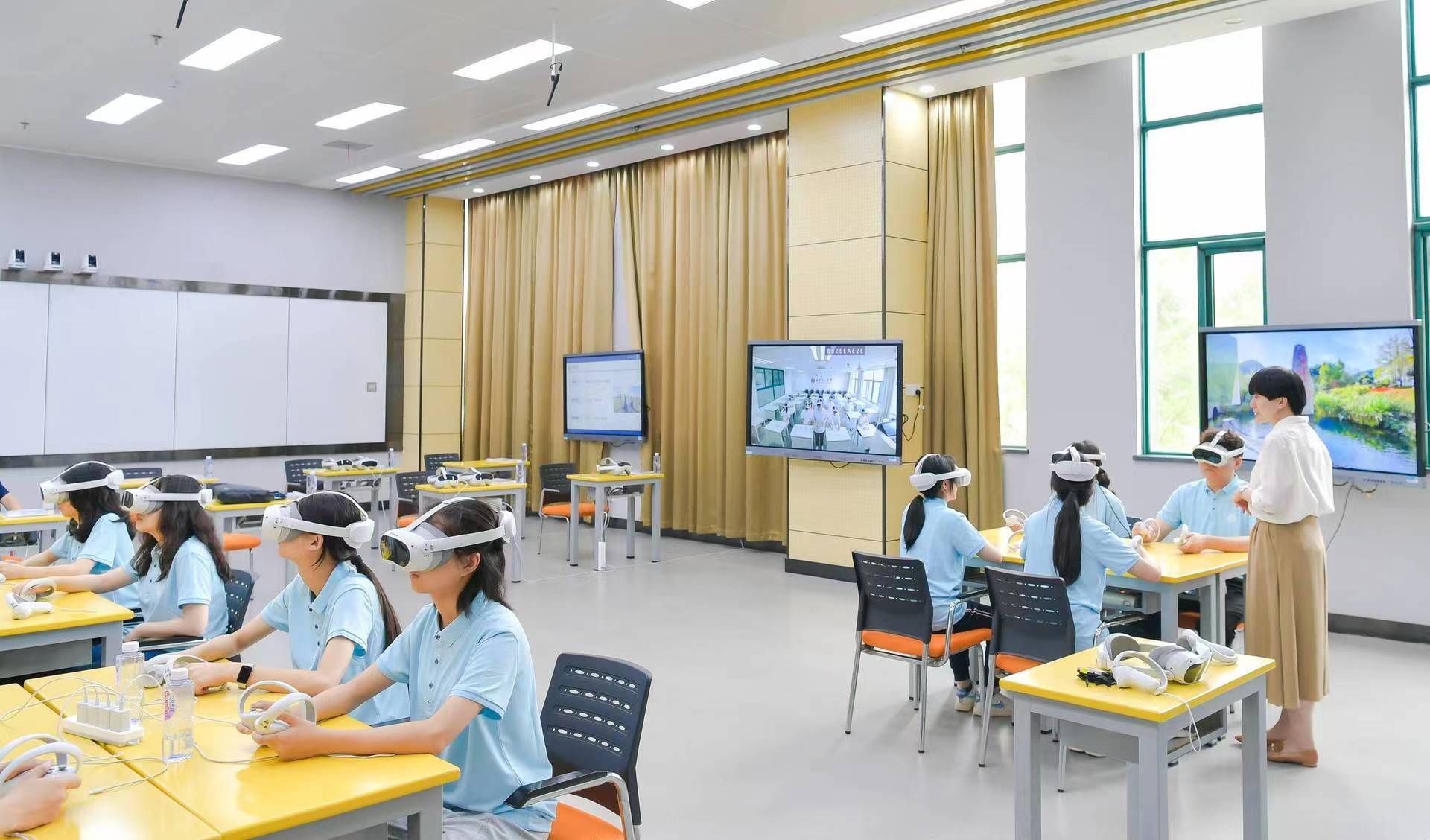 华大在线讯(记者 华轩)走进南湖综合楼N214智慧教室,马克思主义学院教师丁茜正在给学生讲解“人与自然是生命共同体”这个主题。同学们围坐在课桌边,佩戴着VR头盔,手握操作手柄,跟随着丁茜的讲解,库布齐的漫天黄沙、安吉县的秀丽风光、“千湖之城”武汉等虚拟影像渐次出现,让大家在更加直观、立体化的视听体验中,加深对“绿水青山就是金山银山”的理解。这堂以“VR+思政”教学模式打造的沉浸互动、具身体验的“马克思主义基本原理”课堂,是开云足球体育教育数字化的一个缩影。