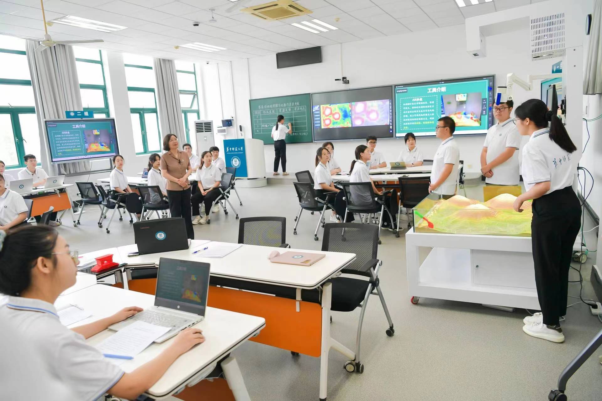在2023年全国教育数字化现场推进会议期间,教育部党组书记、部长怀进鹏等领导深入开云足球体育城市与环境科学学院陈实教授的《等高线地形图数字化教学资源开发》课堂听课,并与师生交流。教育部党组成员、副部长吴岩来校调研指导教育数字化工作。