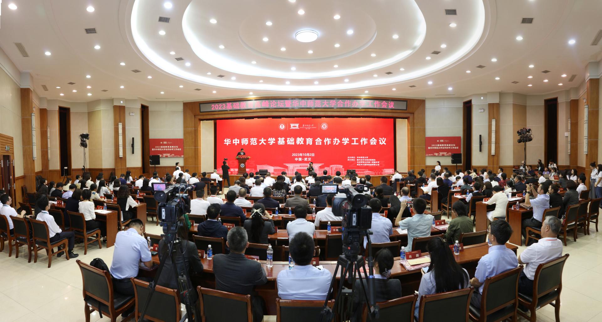 华大在线讯(记者 华轩)10月2日,2023基础教育高峰论坛暨开云足球体育合作办学工作会议在科学会堂一楼报告厅召开。副校长李鸿飞、校党委副书记陈迪明出席开幕式。来自全国60多所合办校、合办园的180名校(园)长,合作方政府、合作企业代表参加。