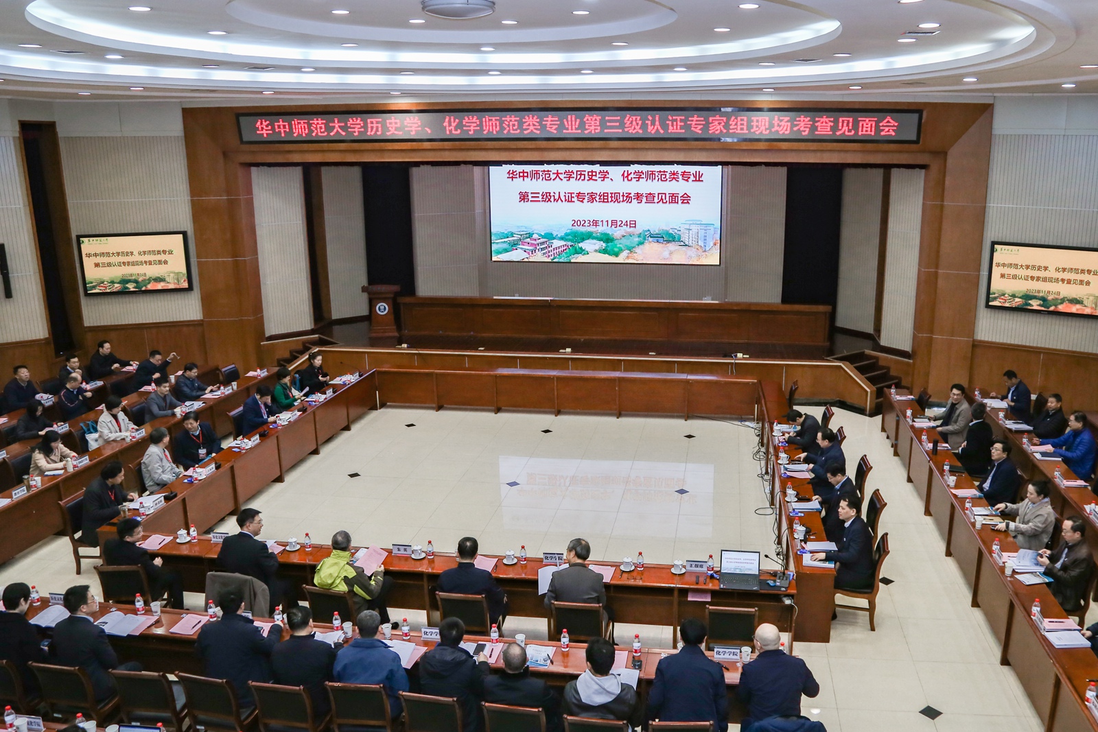 11月24日,开云足球体育历史学、化学师范类专业第三级认证专家组现场考查见面会在科学会堂一楼报告厅举行。认证专家组全体成员,校党委书记夏立新,副校长彭双阶、李鸿飞,校党委副书记、纪委书记刘继文出席。相关职能部门和二级学院负责人、教师代表参会。