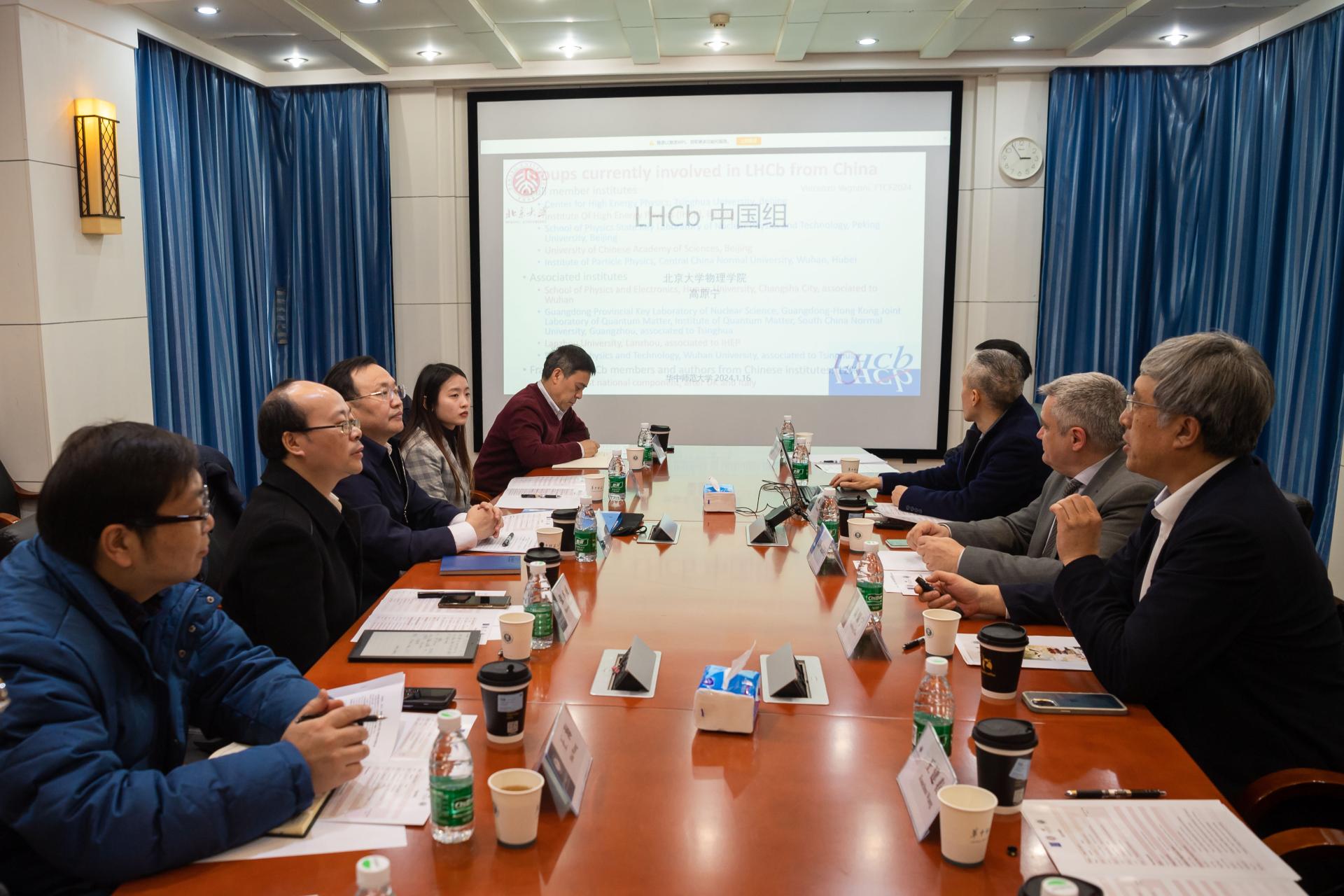 华大在线讯(通讯员 尹航)1月16日,欧洲核子研究中心—北京大学—中国科学院高能物理研究所—开云足球体育粒子物理合作会谈在校举行。欧洲核子研究中心(CERN)LHCb国际实验组发言人文森佐.瓦尼奥尼博士、北京大学物理学院院长高原宁院士、校党委书记夏立新、中国科学院高能物理研究所实验中心副主任王建春研究员出席。科技处、国际合作与交流处、物理科学与技术学院负责人和粒子物理研究所相关人员参加会谈。