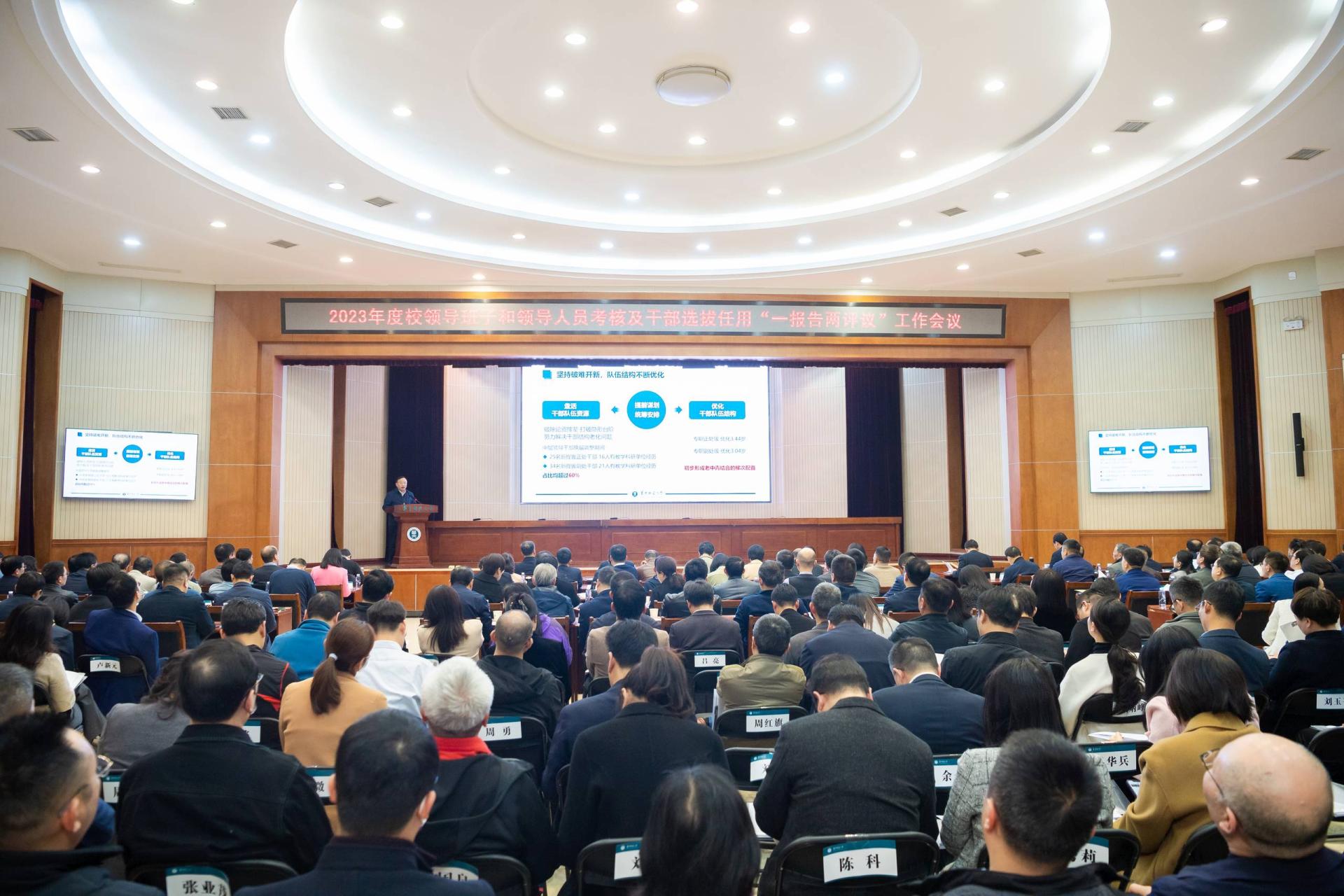 华大在线讯(通讯员 张栩晨)3月21日,开云足球体育召开2023年度校领导班子和领导人员考核及干部选拔任用“一报告两评议”工作会议。校领导班子成员、全体中层干部及其他各方面代表参会。会议由校长彭双阶主持。