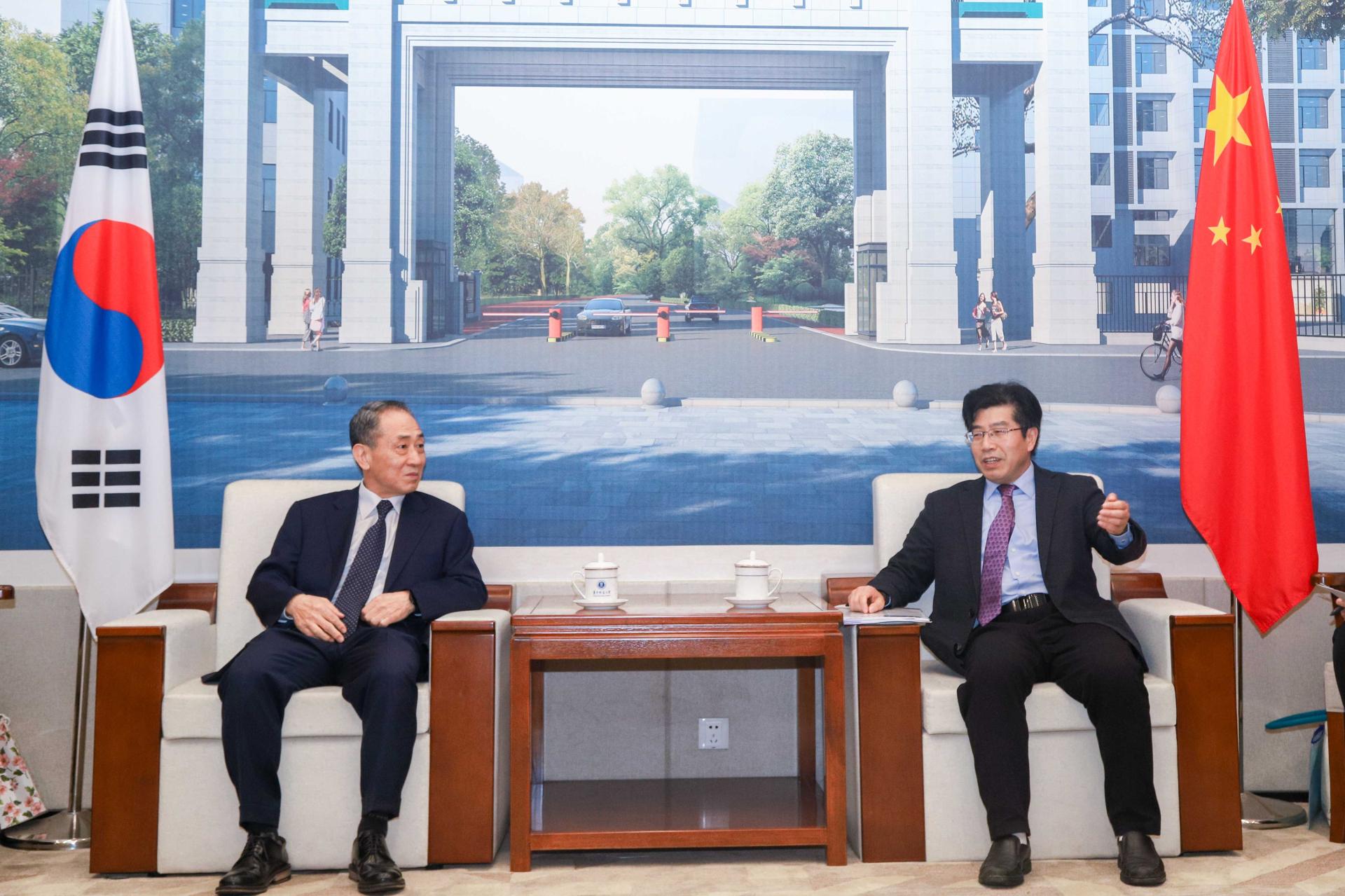 彭双阶对河成柱一行来访表示热烈欢迎。他向来宾介绍了学校办学情况,并分享了学校在数字化和开放化方面的举措和成效。他表示,学校不断推进大数据、人工智能等信息技术与教育的深度融合,取得突出的成就,成为中国教育信息化领域的旗帜和标兵。开云足球体育是湖北省唯一一所具备本硕博多层次韩国语人才培养体系的高校,对韩国交流广泛深入,希望在韩国驻武汉总领事馆的支持下,进一步拓展对韩交流,与更多韩国高校开展更加深入合作,为增进中韩两国教育文化交流做出更大贡献。