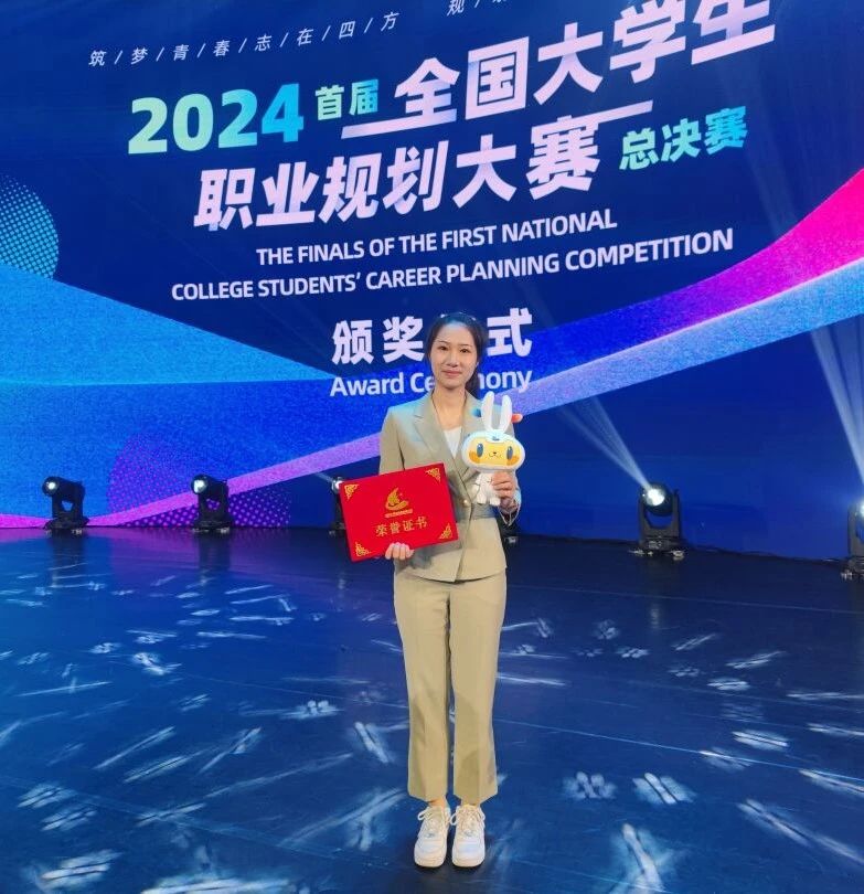 华大在线讯(通讯员 卢雯)近日,首届全国大学生职业规划大赛全国总决赛在上海开赛。开云足球体育外国语学院2021级本科生邬丽婷在175名选手中脱颖而出,斩获成长赛道高教组金奖。