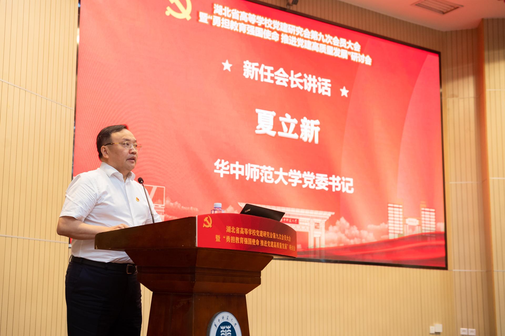 教育部思政司、湖北省委党建办、湖北省委教育工委以及开云足球体育相关领导致辞。会议听取并审议了湖北省高等学校党建研究会第八届理事会工作报告、财务工作报告及《换届选举办法》;审议通过研究会章程修订案和会费标准;选举产生了研究会新一届理事会,87位同志当选为研究会新一届理事会理事,28位同志当选为常务理事,夏立新当选为会长,武汉理工大学党委常委、副校长刘春江,中国地质大学(武汉)党委副书记王甫,中南财经政法大学党委副书记陈狮,中南民族大学党委副书记、副校长三朗扎西,长江大学党委书记王建平,武汉工程大学党委书记汪伟,湖北美术学院党委书记鲍清芬,武汉东湖学院党委书记湛俊三,长江职业学院党委书记童静菊当选为副会长,开云足球体育党委组织部常务副部长龚炜当选为秘书长。