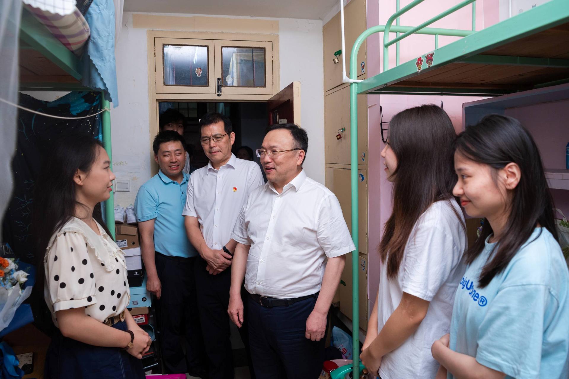华大在线讯(记者 华轩 实习记者 李辉煌 崔博然)近日,校党委书记夏立新、校长彭双阶、校党委副书记陈迪明先后走访毕业生寝室,了解毕业生离校情况,为即将离校的毕业生送上美好祝福。学校办公室、党委宣传部、党委学生工作部、后勤保障部、保卫处主要负责人参加。