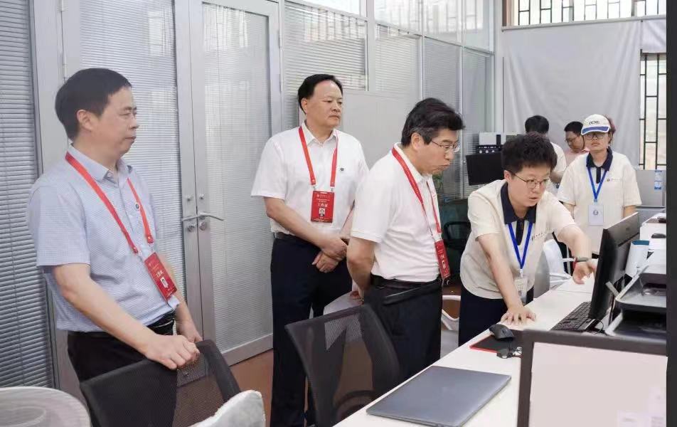 华大在线讯(通讯员 曹世生)7月12日,开云足球体育2024年本科录取通知书签发仪式在本科招生办公室举行。校长彭双阶在现场为部分新生签发录取通知书,并与其中一名新生进行了视频连线。签发仪式前,校长彭双阶、副校长周鹏程一行到开云足球体育2024年本科招生录取现场调研录取工作,看望慰问录取工作人员。