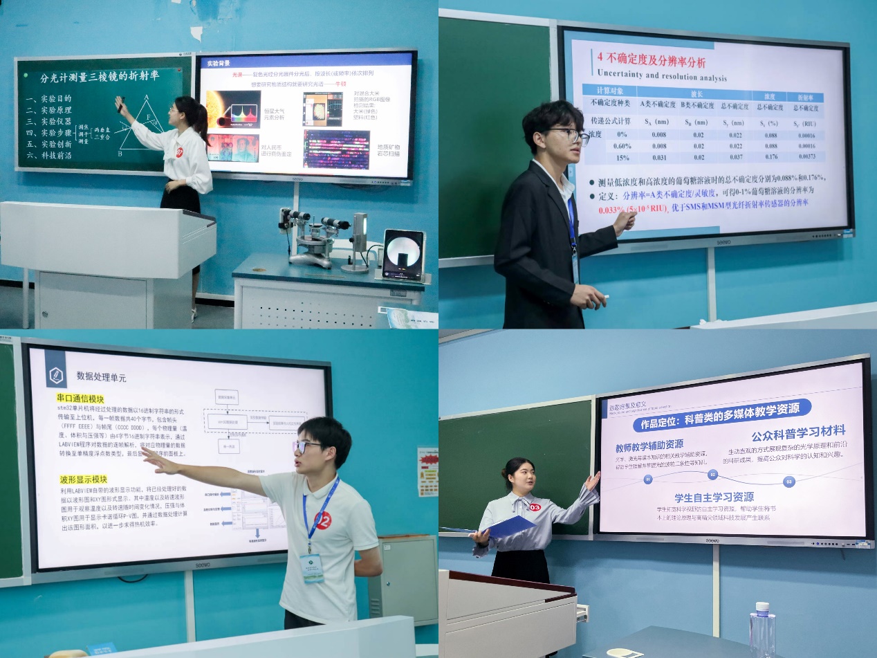 本届大学生物理实验创新设计竞赛分为初赛和决赛两个阶段,项目分为命题类、讲课类和自选类三个类别,共吸引了来自全省47所院校的2000余名学生参加。前期各高校精心组织、认真选拔,初赛共有47所院校报送613项参赛作品。经专家评委线上评审,最终确定166项作品进入现场进行决赛。其中,命题类84项、自选类51项、讲课类31项。