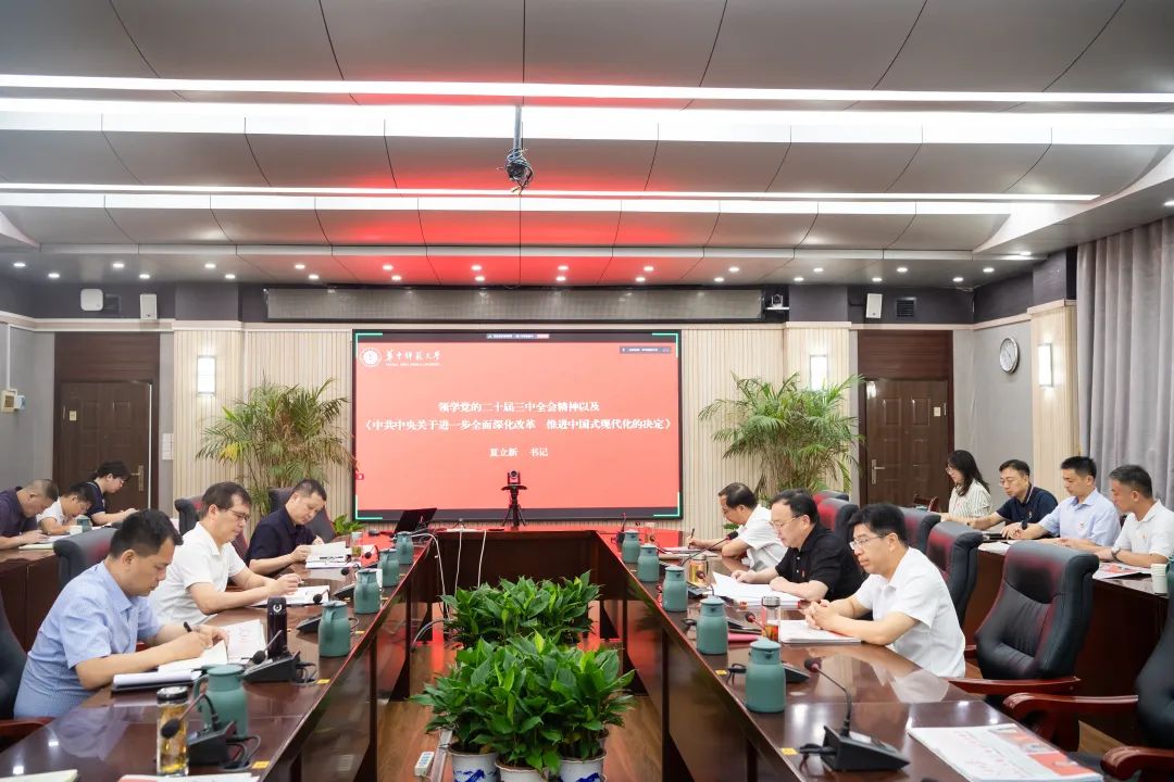 华大在线记者 华轩7月22日,校党委理论学习中心组在行政楼一楼会议室开展2024年第9次集体学习,深入学习贯彻党的二十届三中全会精神。校党委常委参学,相关职能部门负责人列席。校党委书记夏立新主持学习。