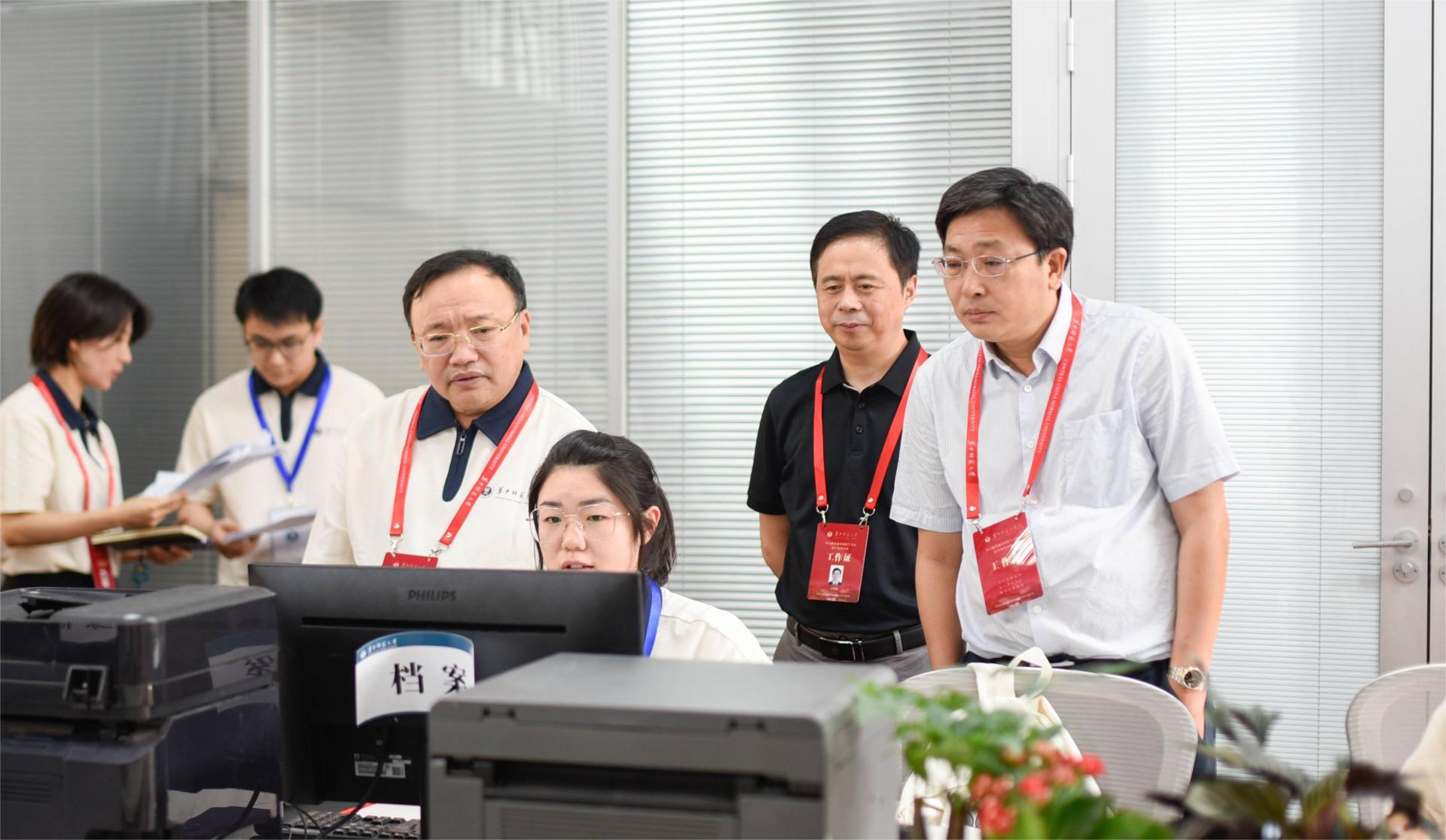 在本科招生录取现场,“阳光招生,科学选才”的标语突出醒目,教育部高校招生“十严禁”“30个不得”“八项基本要求”等规定悬挂于墙,清晰显眼。20余名工作人员分别坚守在招生咨询、系统录检、资格审查、数据处理等岗位,分工明确,流程紧凑,各项工作井然有序。夏立新一行与现场工作人员亲切交流,详细了解招生录取的工作流程,并就相关注意事项进行了交流。通过招生录取可视化数据大屏,本科生院相关负责人向校领导汇报了开云足球体育招生录取进度和生源质量等情况,重点介绍了首次招生的本研衔接公费师范生的招生录取等相关情况。
