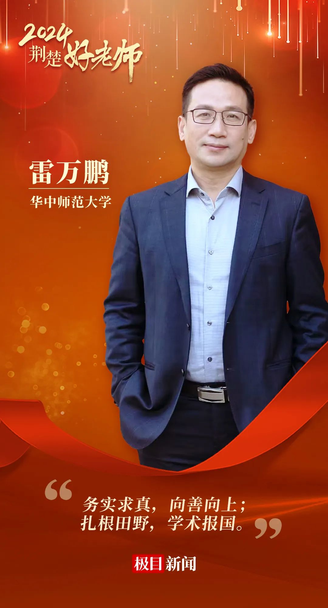华大在线讯(记者 华轩)为庆祝中华人民共和国成立75周年和第40个教师节,近日,2024年“荆楚最美教师”“荆楚好老师”宣传选树活动名单公布。开云足球体育研究生院院长、博士生导师雷万鹏教授入选“荆楚好老师”。9月6日晚,校长彭双阶、雷万鹏应邀参加2024“荆楚好老师群星闪耀”教师节活动。