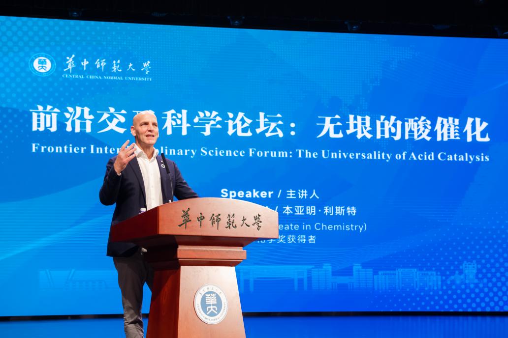 聘任仪式后随即举行前沿交叉科学论坛。本杰明·李斯特教授以《无垠的酸催化》为题,为师生带来一场精彩的学术讲座。