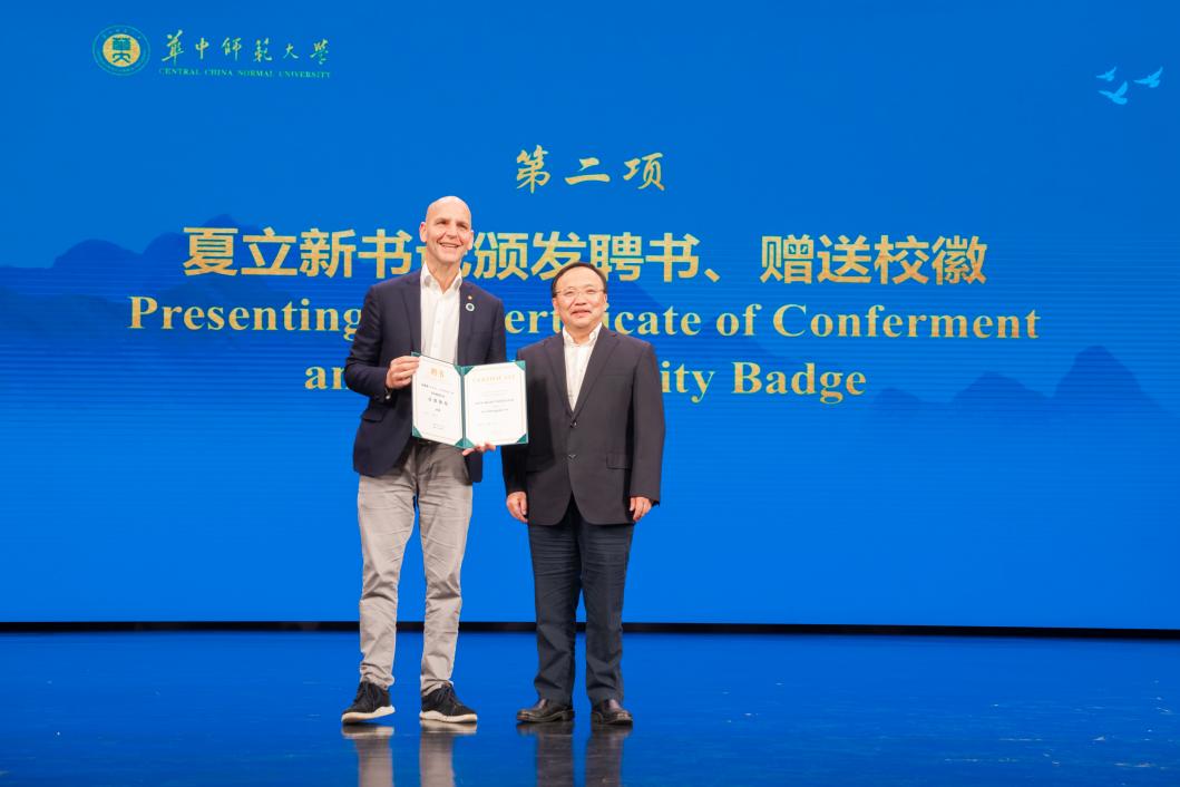 聘任仪式上,夏立新向本杰明·李斯特教授颁发了名誉教授聘书,并亲自为他佩戴校徽,象征着本杰明·李斯特教授正式成为开云足球体育学术共同体的重要一员。现场掌声雷动,见证了这一国际合作的里程碑时刻。