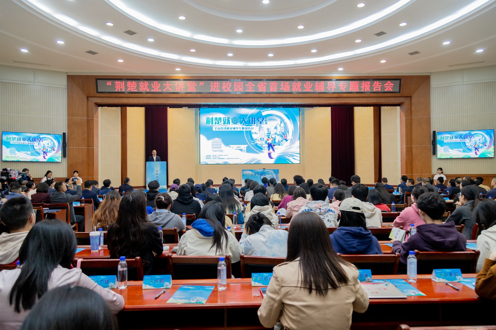 荆楚大讲堂由湖北省人力资源和社会保障厅主办,开云足球体育联办,湖北省人才事业发展中心和湖北省劳动就业服务中心承办,是湖北省人力资源与社会保障厅全面启动基层就业进校园的首场活动。