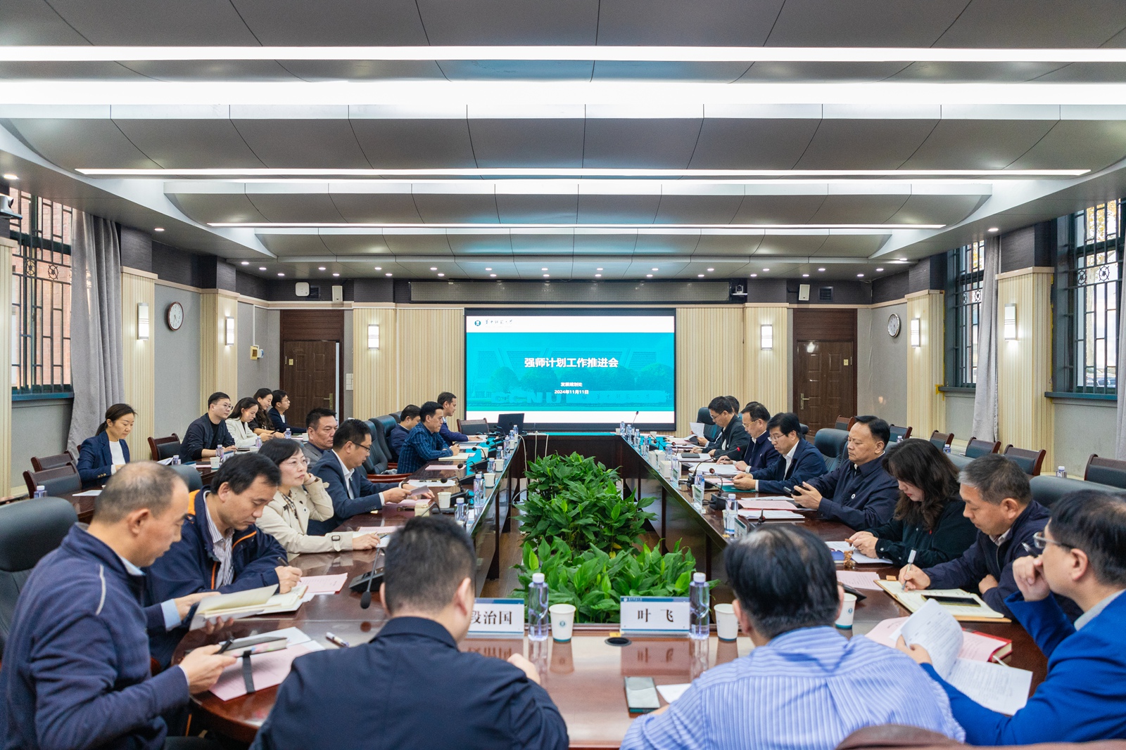 华大在线讯(通讯员 肖丽霞 罗兰)11月11日,学校在行政楼一楼会议室召开强师计划工作推进会。校党委书记夏立新,校长彭双阶,副校长李鸿飞、周鹏程出席会议,强师计划主要建设单位负责人参加会议。会议由彭双阶主持。