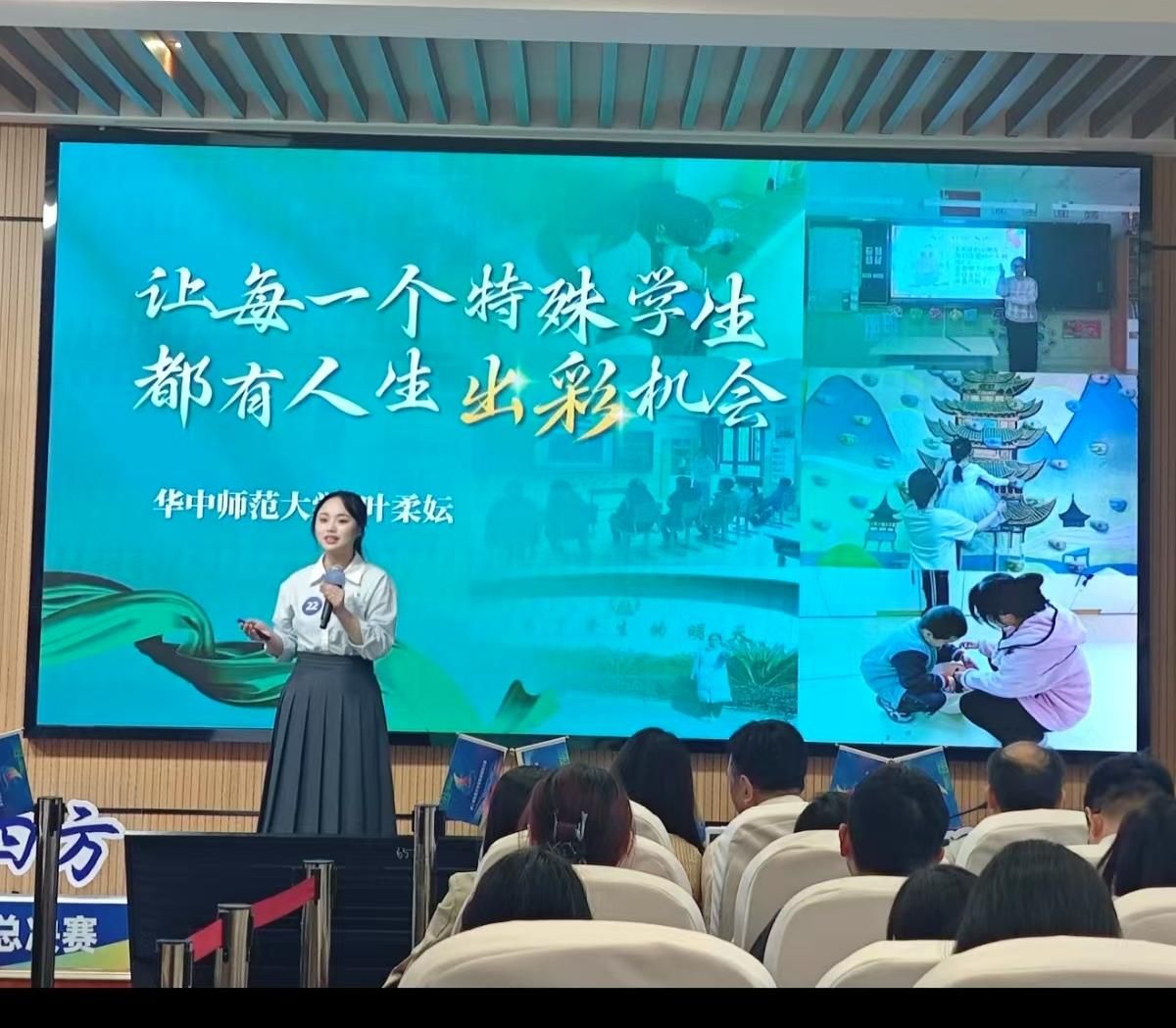 4月17日,成长赛道高教组总决赛在湖南大学开赛。叶柔妘以致力于学生融合发展的特殊教育教师为职业目标,以“让每一个特殊学生都有人生出彩机会”为主题,结合开云中国育人精神,从特教心、专业力、融合行三个层次展开汇报,呈现自己成为特殊教育教师的成长行动,并呼吁大家关注特教事业,凝聚力量共建平等包容的美好社会。