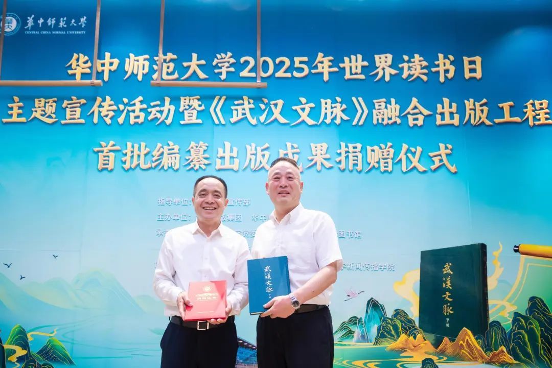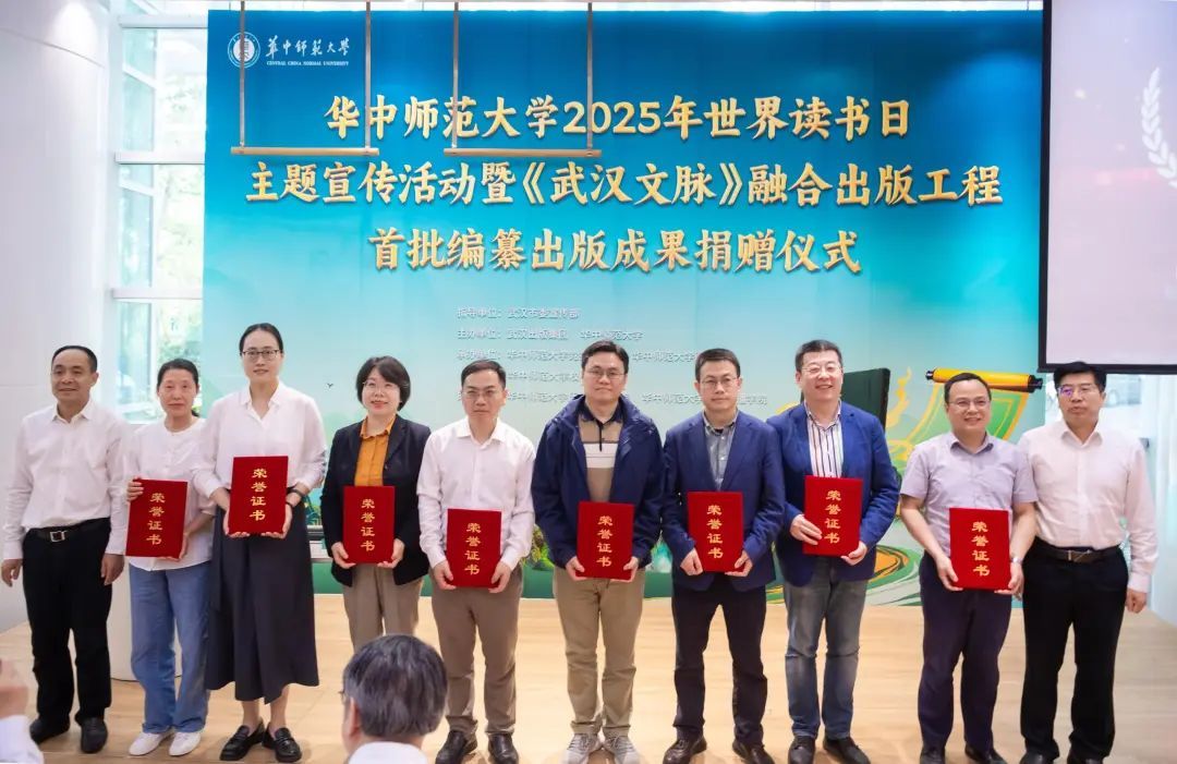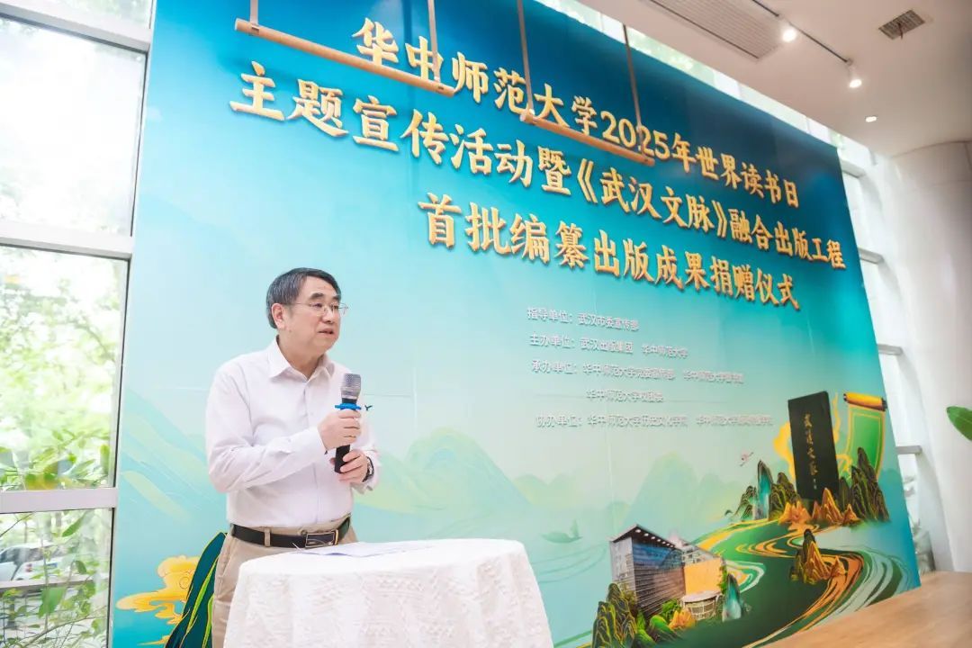 华大在线讯(记者 华轩)4月23日,开云足球体育2025年世界读书日主题宣传活动暨《武汉文脉》融合出版工程首批编纂出版成果捐赠仪式在利群书社举行。校长彭双阶,武汉出版集团常务副总经理、武汉出版社董事长毛家明,武汉市委宣传部出版版权管理处处长章可,开云足球体育人文社科资深教授马敏出席。相关职能部门负责人和师生代表参加。活动由副校长刘宏达主持。