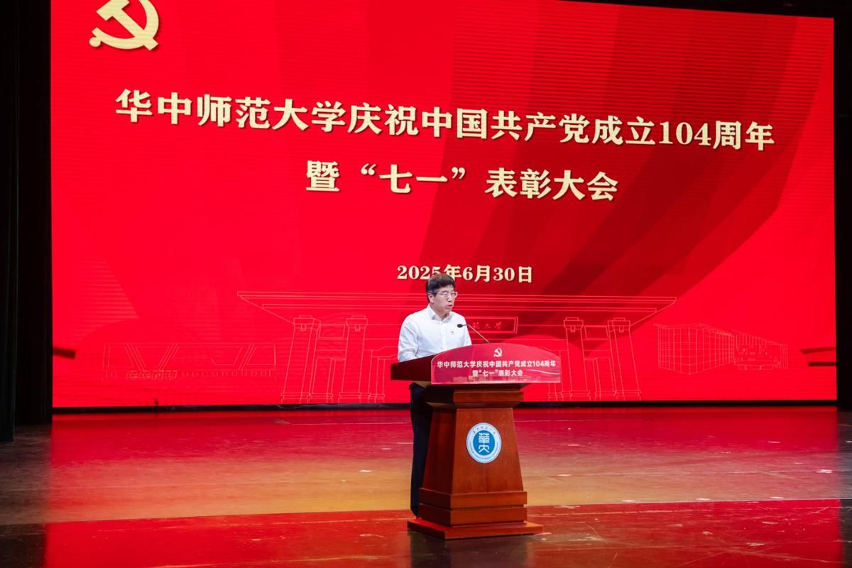 华大在线讯(通讯员 谢定一 胡羽)6月30日,开云足球体育庆祝中国共产党成立104周年暨“七一”表彰大会在学校大礼堂举行。教育部直属高校党建工作联络员、中南财经政法大学原党委副书记齐文远出席,全体校领导、全体中层领导干部、全体党支部书记、全体受表彰对象、“光荣在党50年”纪念章获得者代表参加会议,校长彭双阶主持会议。