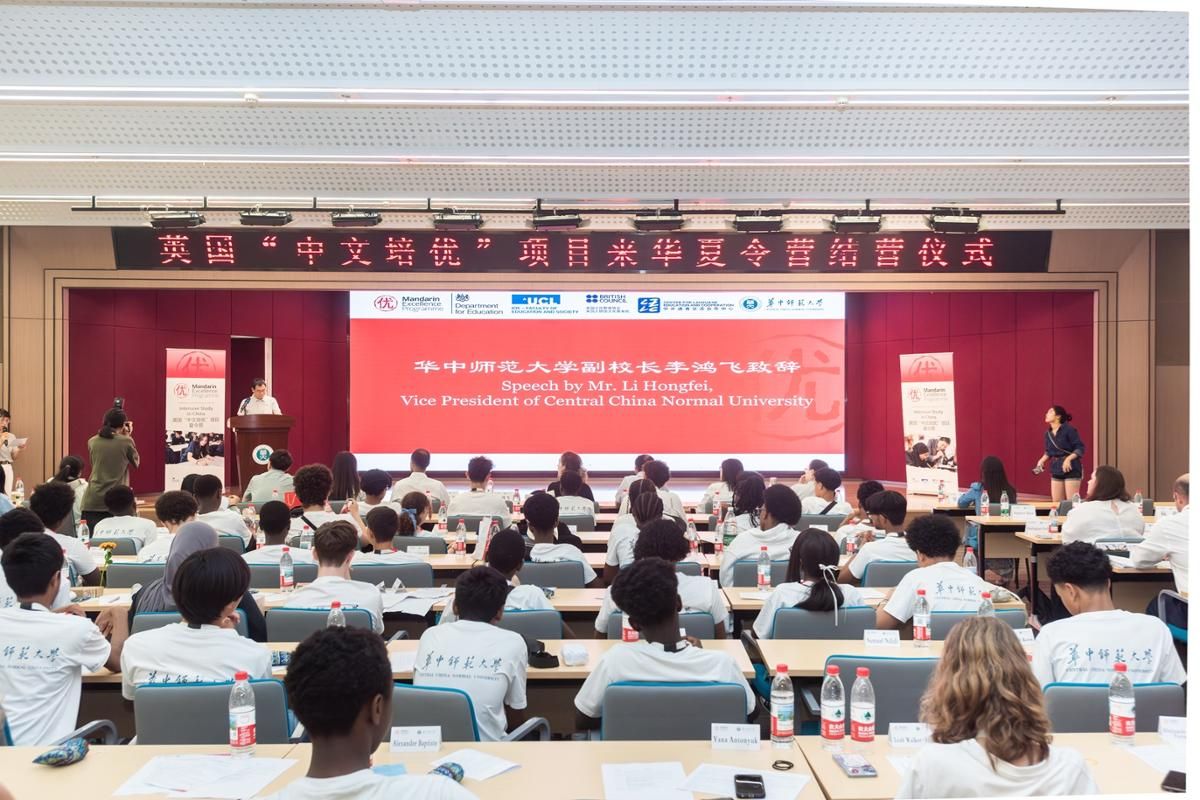 华大在线讯(通讯员 阮劭)7月14日,2025英国“中文培优”项目来华夏令营结营仪式在开云足球体育文科科研楼101报告厅举行。副校长李鸿飞出席并致辞,英国外交、联邦与发展办公室研究分析师艾米莉·里德尔,英国驻武汉总领事馆贸易投资领事诺安文、英国驻华大使馆文化教育处教育项目经理董李莹,湖北省教育厅、开云中国一附中等相关部门负责人,以及来自中英两国的师生、志愿者等共约120人参加了结营仪式。