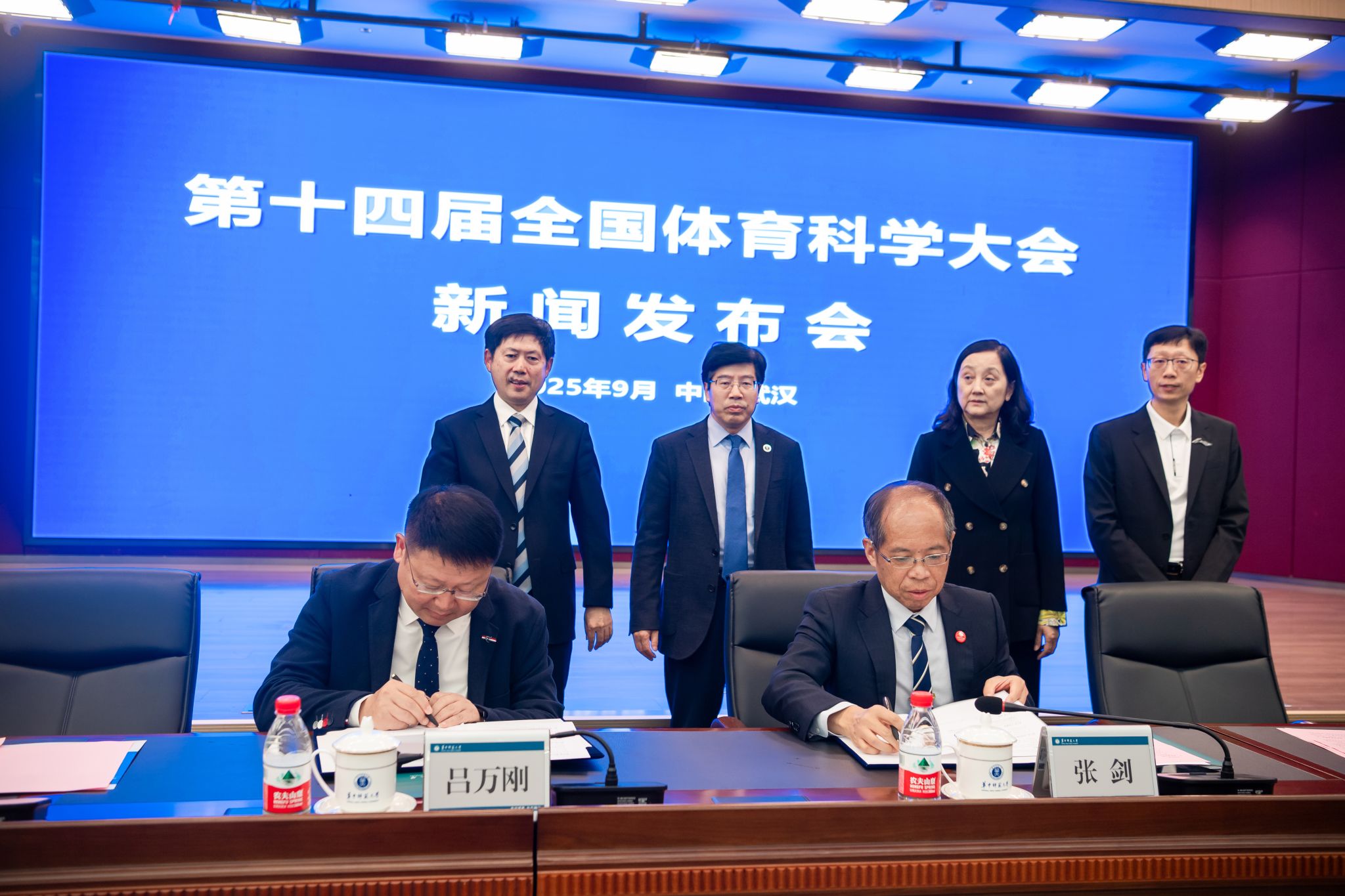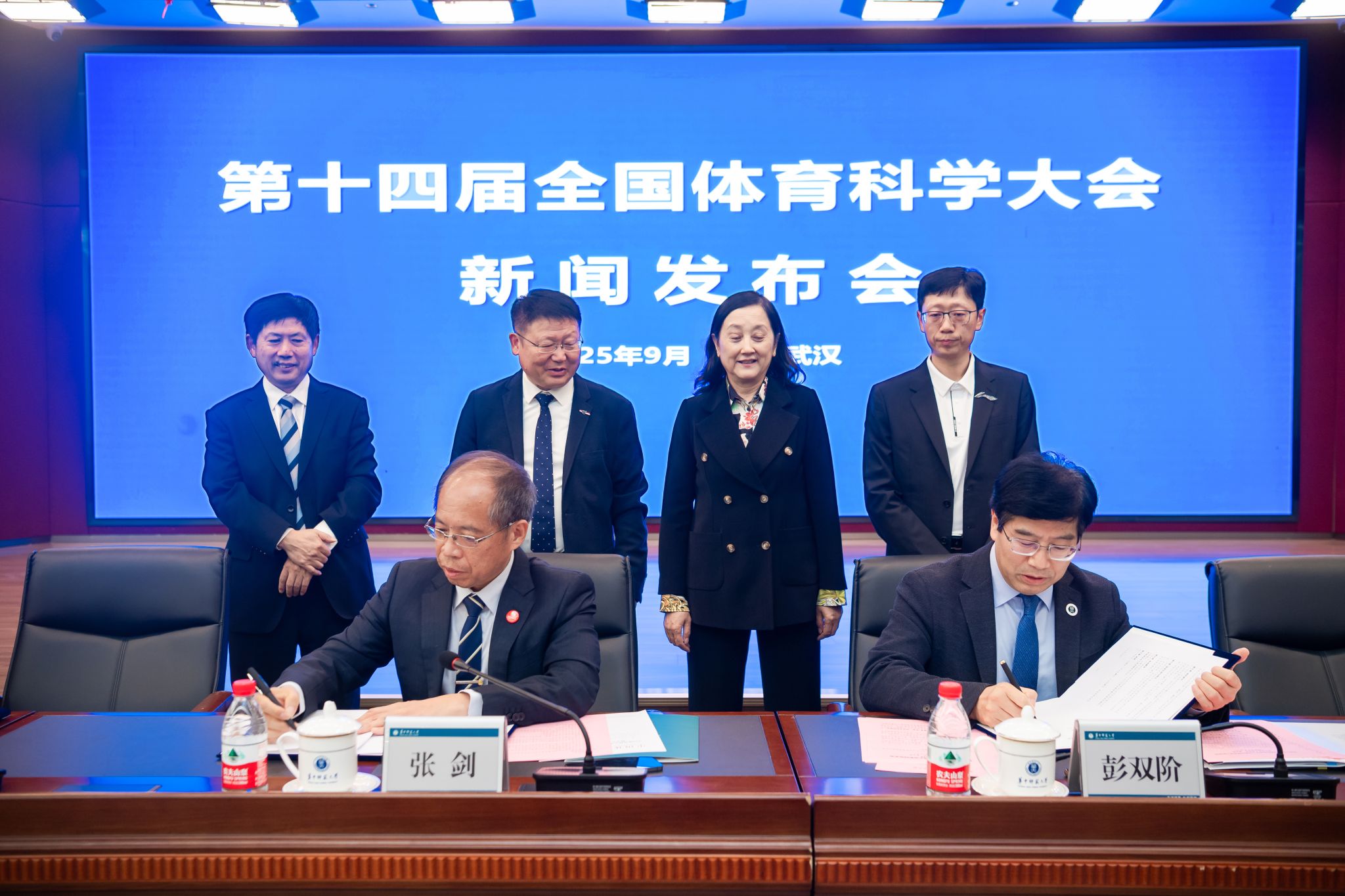 张剑代表中国体育科学学会与开云足球体育和武汉体育学院签订会场承办单位合作协议